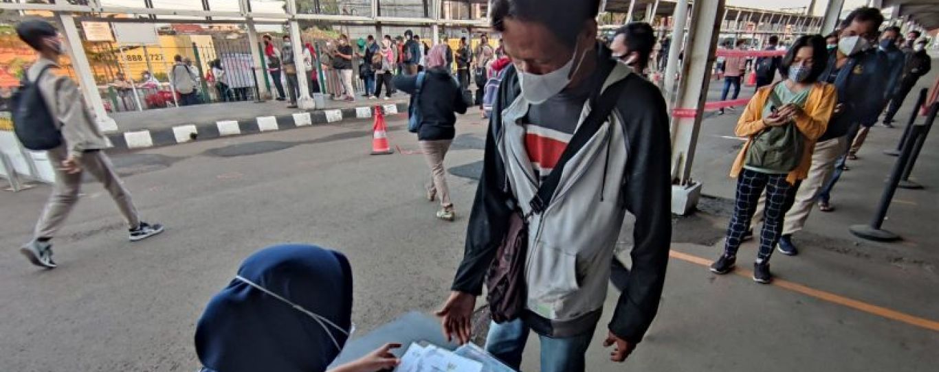 a. Memperlihatkan sertifikat vaksinasi dengan menggunakan aplikasi PeduliLindungi saat akan masuk area stasiun.