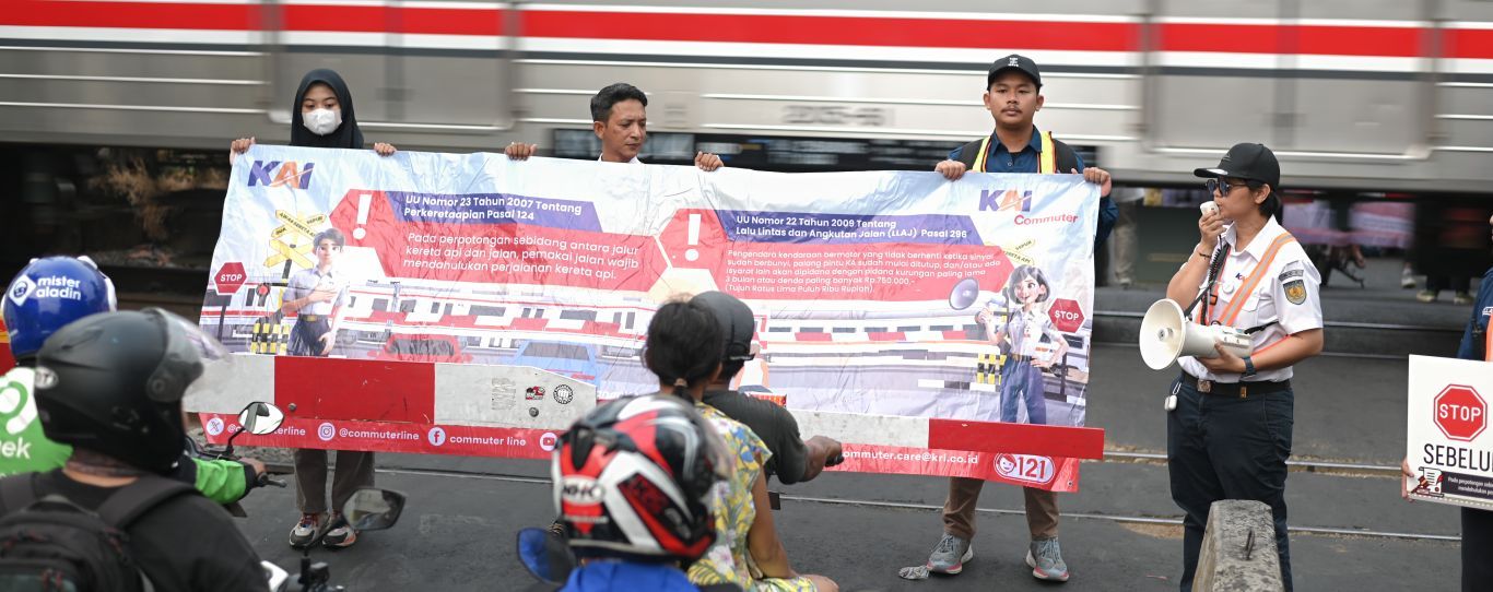 Jakarta - KAI Commuter lakukan sosialisasi peraturan perlintasan serentak di seluruh wilayah operasional Commuter Line dalam rangka HUT KAI Commuter ke-16. Kegiatan yang berlangsung Selasa, (3/9) kemarin dilakukan di 16 titik daerah Jabodetabek, Wilayah 2 Bandung, Wilayah 6 Yogyakarta, dan wilayah 8 Surabaya.