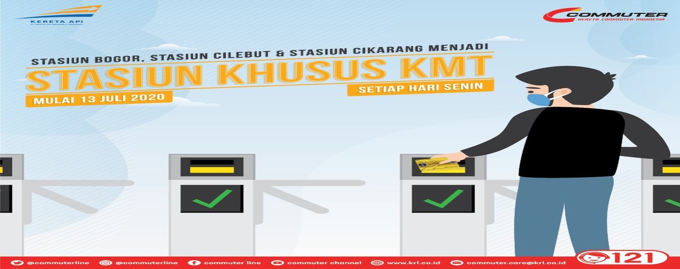 PT KCI kembali menyampaikan bahwa mulai Senin 13 Juli 2020 Stasiun Bogor, Stasiun Cilebut, dan diikuti juga dengan Stasiun Cikarang akan menjadi Stasiun Khusus KMT. Pada tahap awal ini pemberlakuan stasiun KMT di stasiun tersebut akan diberlakukan pada setiap hari Senin. Namun tak menutup kemungkinan apabila berdasarkan hasil evaluasi berkala nantinya ketiga stasiun tersebut sudah siap untuk menjadi stasiun khusus KMT, maka akan diberlakukan setiap hari.